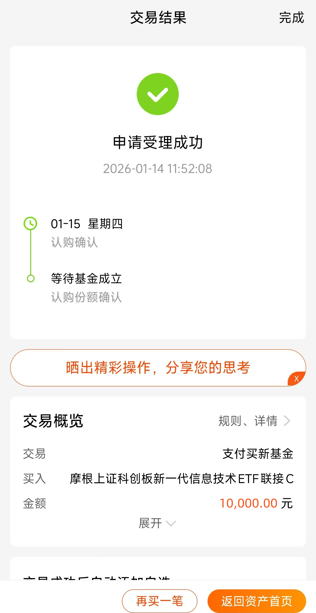 今天行情又爆了,AI应用传媒板块开盘就拉升,科创信息指数涨超4%,资金像开了闸一样涌进来!昨天短暂休息后,科技板块今天再度大涨,科创信息指数弹性十足,新上市的摩根上证科创板新一代信息技术ETF联接C(025316)就是跟踪这个指数,波动起来比大盘刺激多了。春季行情为啥适合这个?2026年经济更明显的改善和企业盈利回升可能助推行情,主线得看产业景气趋势和业绩线索,科技AI这种新兴产业机会多多。AI是2026年投资共识之一,发展进入全球共振阶段,海外和国内龙头AI资本开支保持高增长,“十五五”规划强调科技自立自强。这个基金跟踪的指数硬核得很,高度聚焦硬科技,网罗科创板龙头,行业集中度高,半导体占了80.2%,计算机和电子分别占6.6%和4.8%,一点不杂。业绩方面,短中长期都干过了科创50、科创100等指数,近六个月碾压美股科技和港股科技,三年五年大幅超赢,行情来时反弹力强,远胜其他科创板指数。2026年A股最确定的贝塔在科技,这个基金就押这了。AI应用迎来历史性机遇,2026年商业化落地率会大幅提升,企业采用率预计达80%,全球AI营销市场规模突破4500亿元。国产替代空间巨大,半导体一些关键领域国产化率还很低,比如服务器CPU、GPU等不到10%,2026年国产芯片会快速发展。AI改造行业是嵌入式、沉浸式的,未来三五年深刻重塑企业,现在核心公司估值对应2026年合理,市盈率有望抬升。这基金新上市,找机会的可以关注。#商业航天探底回升 要上车吗?#