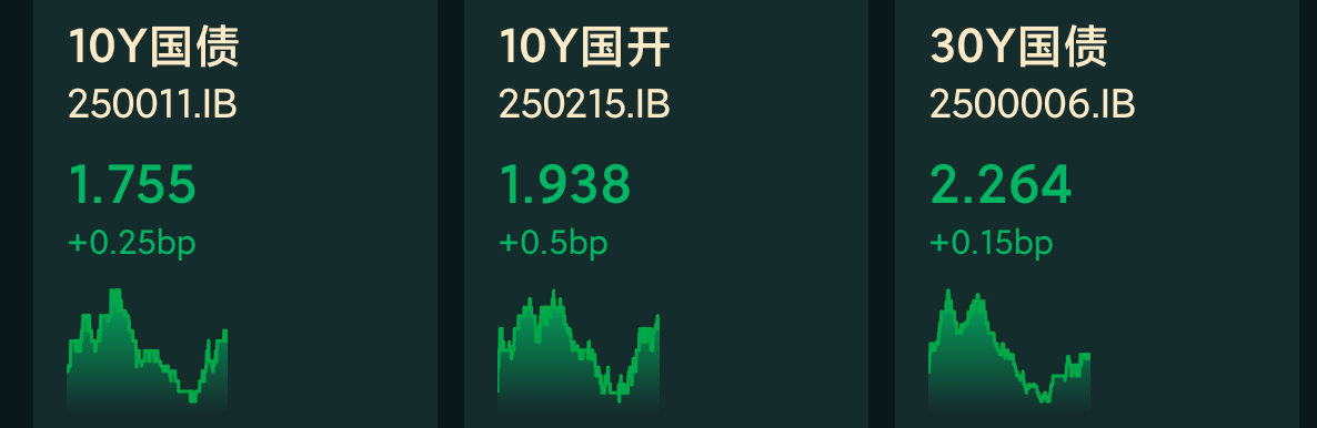 十年期国债收益率:1.755%,+0.25BP(国债收益率越跌,债市越涨)