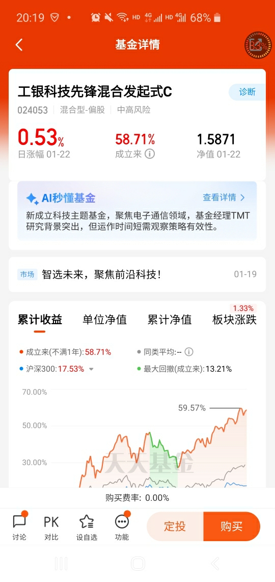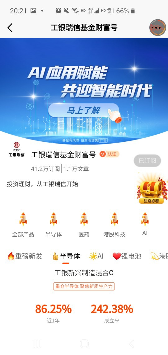 所以我非常看好2026年AI应用的投资价值。一键布局AI应用,我正密切关注: $工银科技先锋混合发起式C(OTCFUND|024053)$。本基金聚焦半导体+AI算力+消费电子+AI应用的龙头企业,自2025年7月成立以来,收益率达到58.71%,非常优秀!