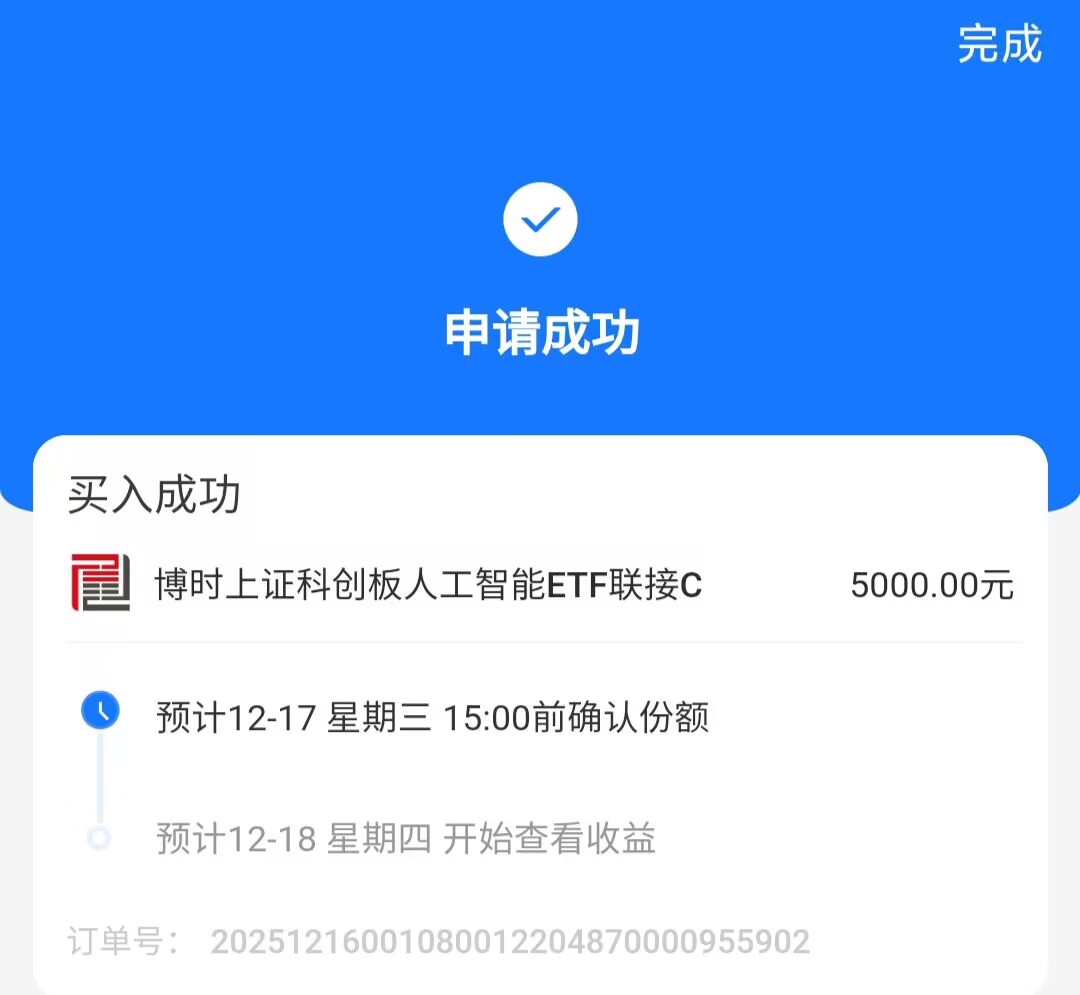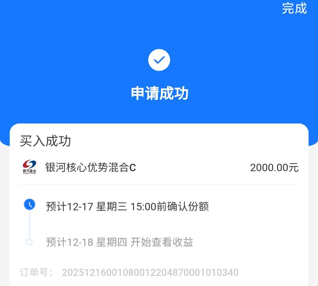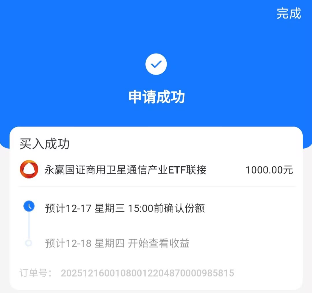 这个方向之所持续上涨, 也是与商业航天迎来密集催化有关,“十五五”规划建议明确提出“建设现代化产业体系,加快建设航天强国,年底朱雀三号首飞入轨,多只商业火箭年底迎来集中试射,卫星通信发展进程加快,这引发该基金持续上涨,目前看这个方向已经成为A股新主线,之前连涨,一直找不到合适的时机时机,等啊等,等到今天,终于可以多加点了,今天决定继续追加1000元增大仓位。
