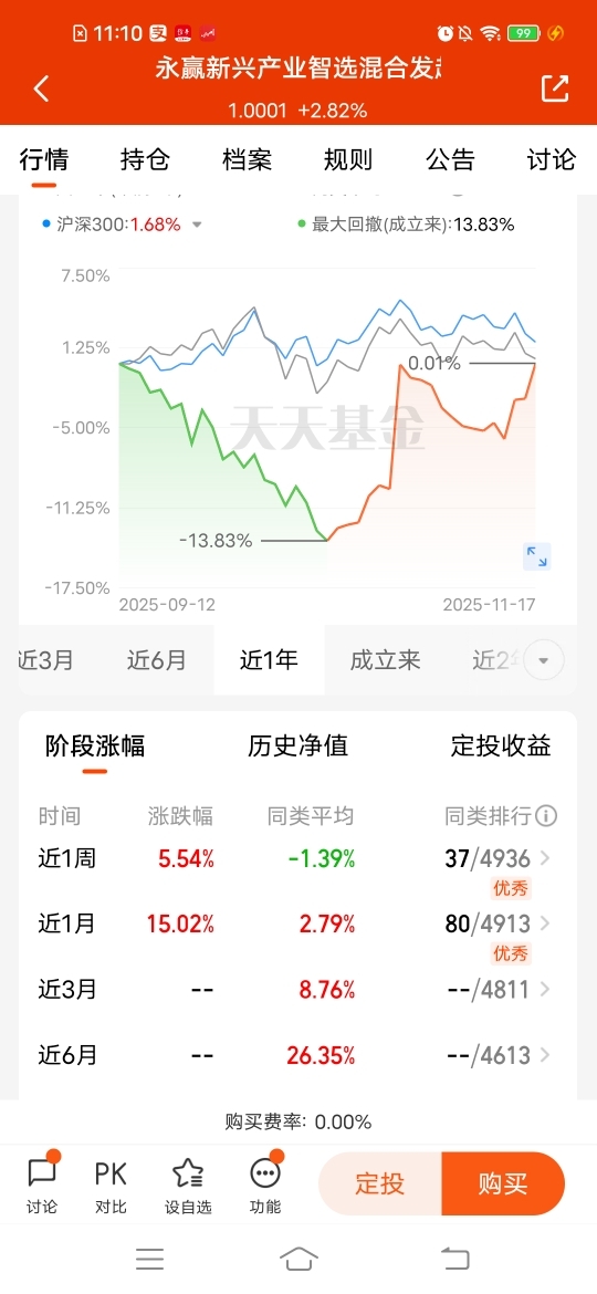 $永赢新兴产业智选混合发起C$趁着市场波动,也是布局时机,昨天涨幅2.82%,近