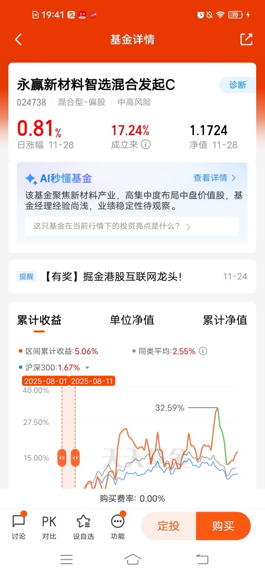 $永赢新材料智选混合发起C$刚成立没几个月目前也是布局好时机,今晚更新涨幅0.8