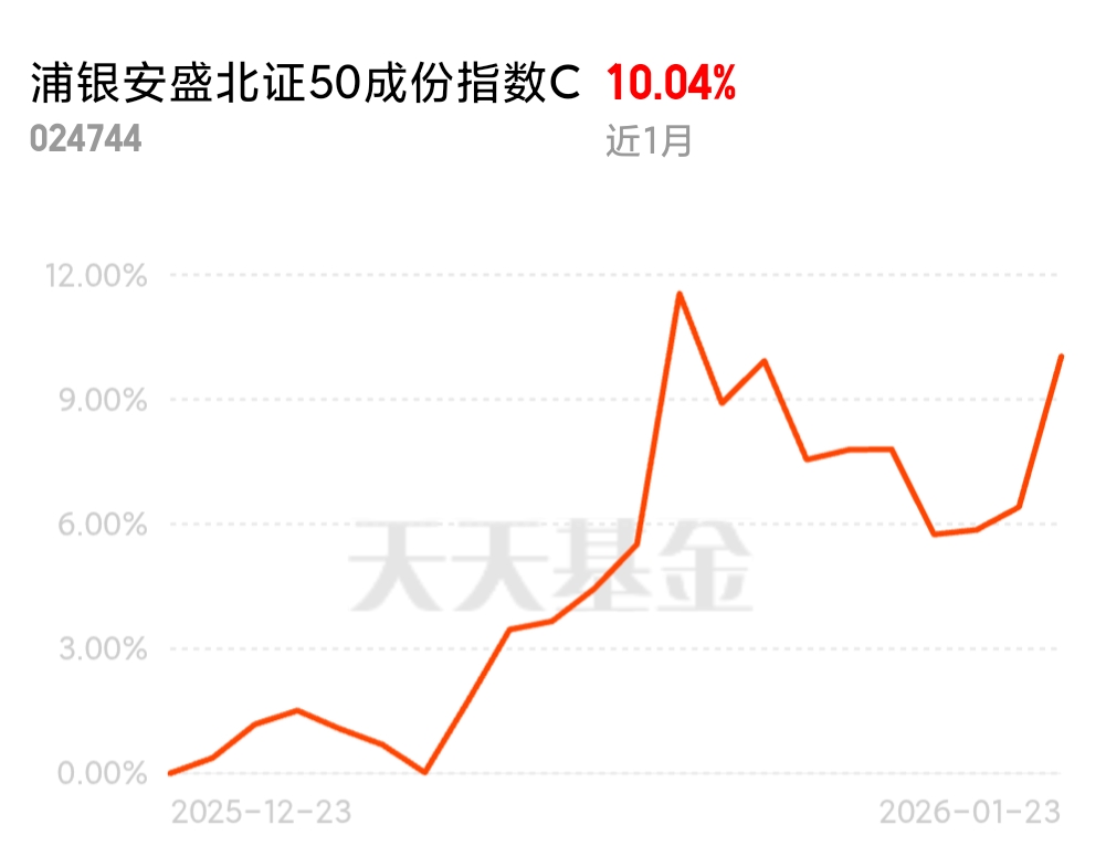 太强了兄弟们,$浦银安盛北证50成份指数C$ 今天是直接大涨3.41%,我对比了几个跟踪同指数的基金,发现还是这个香,综合费率便宜,而且涨幅也跟得上。北证猛攻行情,相信经历过924的投资者都已经见识过了,可以说是暴涨级别,飞速向上,而自25年6月份以来,几乎没什么动静,我是看好今年的北证有望继续腾飞,但这种行情通常需要耐心等待以及充分的吸筹,现在已经有起势的苗头。可惜的是,目前很多北证50的基金都是限购的,又是这只$浦银安盛北证50成份指数C$ ,目前不限购,可以按照自己的思路去参与行情,宝藏基金,分享给现在还在关注北证的投资者!