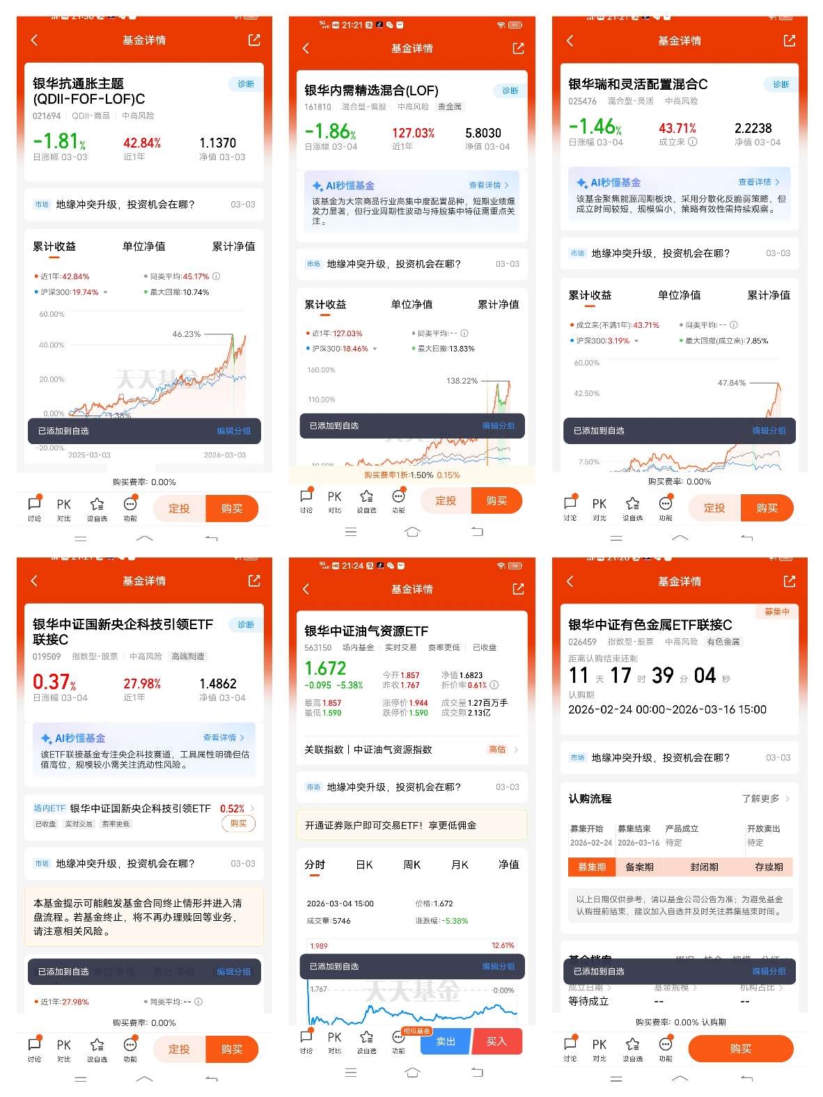 对市场的理解和思考:近期市场波动不改慢牛走势,回调就是倒车接人机会!中东紧张局势直接驱动有色金属、能源需求走强,油气、石油化工直接受益于油价上涨,有色金属(铜、铝、黄金等)受益于通胀预期和避险需求,可借基布局相关投资机会。$银华中证油气资源ETF$ $银华抗通胀主题(QDII-FOF-LOF)C$ $银华内需精选混合(LOF)$ $银华瑞和灵活配置混合C$ $银华中证国新央企科技引领ETF联接C$