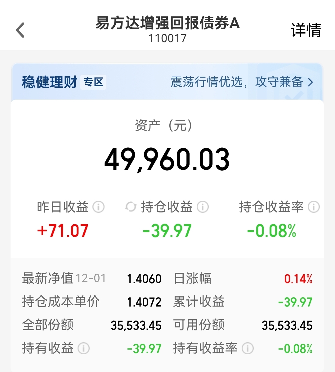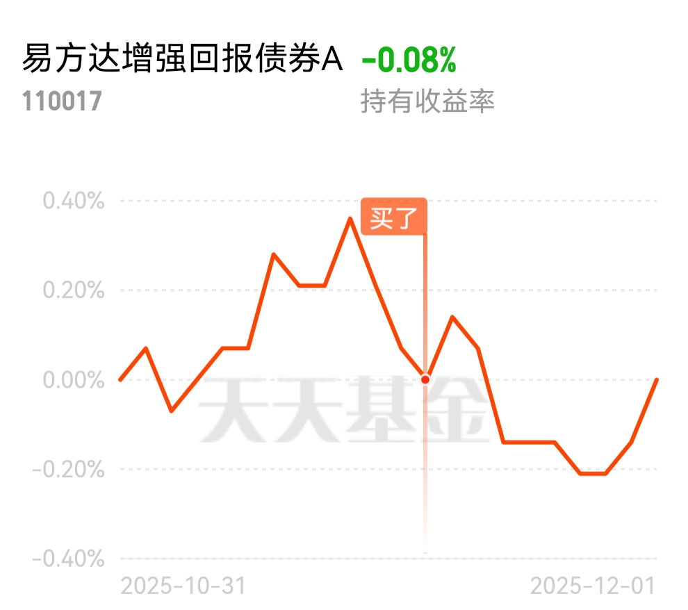 昨天个人持仓的$易方达增强回报债券A$ 收了14个蛋,近6个月收了315个蛋,虽然过去一个多月该基金净值波动较大,主要是受权益市场调整影响,但该基金历史上每次回调后都能快速修复,相信这次也不例外;
