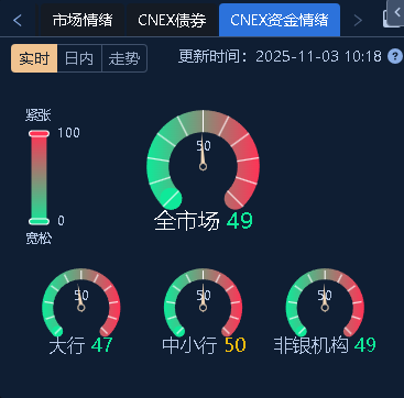 DR001报1.30%左右,DR007报1.41%左右,资金情绪均衡(CNEX资金面情绪指数在49)