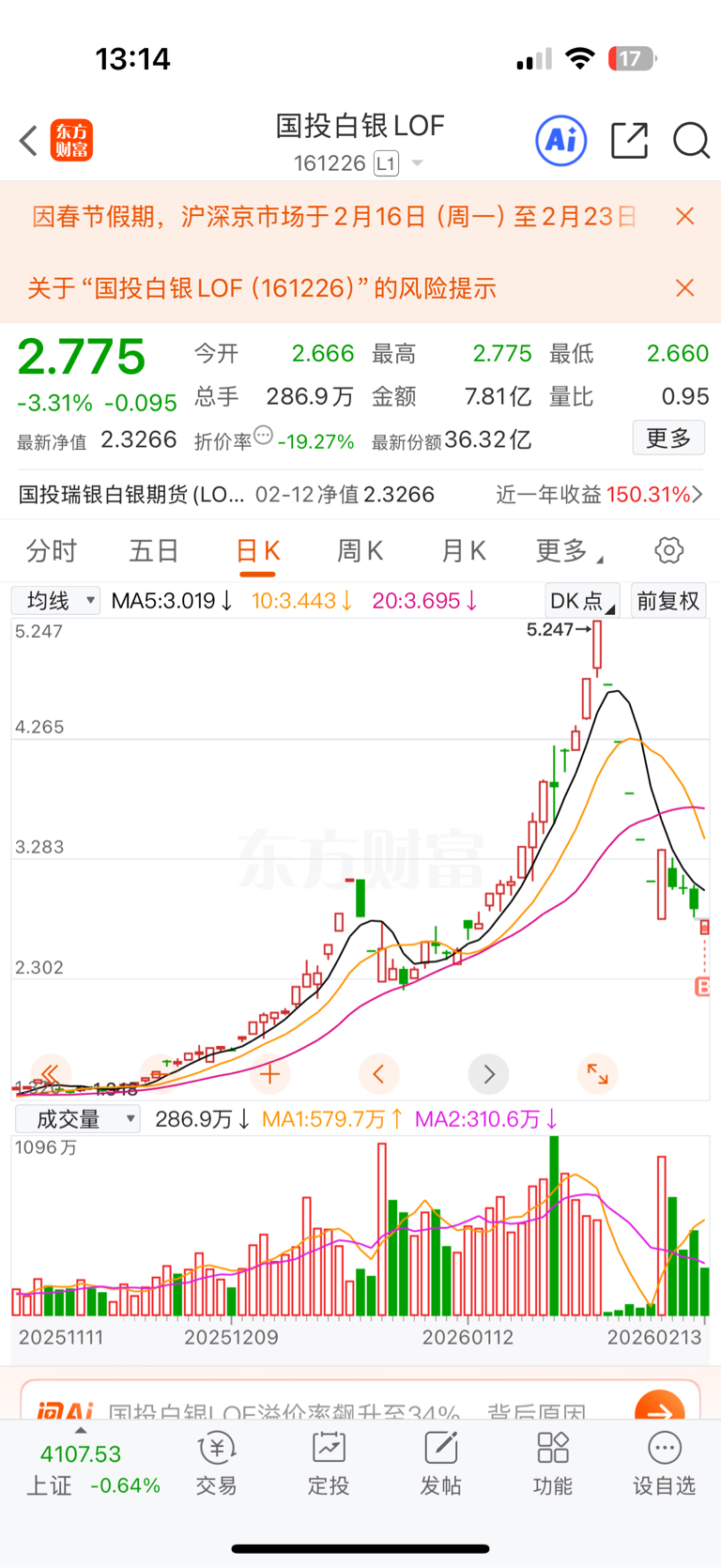 $国投白银LOF(SZ161226)$ 跟着主力捡点带血的筹码