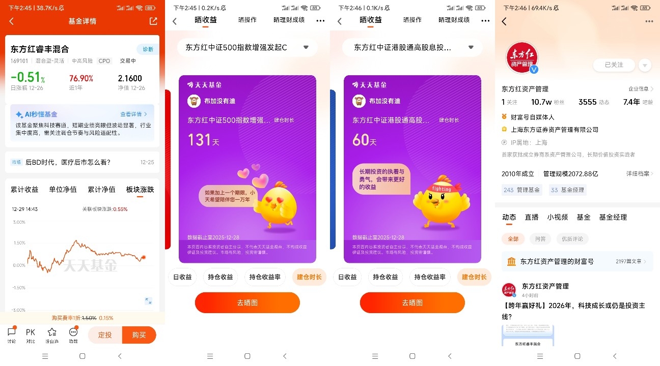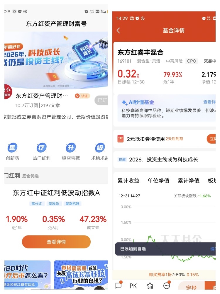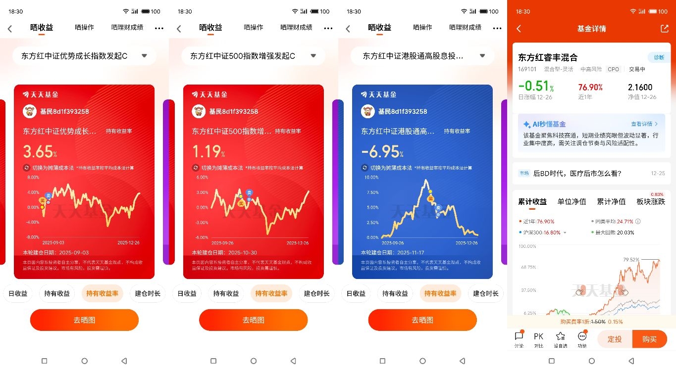 我非常信赖东方红基金,目前定投持有$东方红中证红利低波动指数A$$东方红中证优势成长指数发起C$ $东方红益丰纯债债券C$ 等多只基金,获得了非常好的收益回报和持有体验!元旦后开启定投$东方红睿丰混合$ ,这只基金聚焦科技赛道,2025年收益回报81.39%,在2262只同类基金中排名前4%,业绩表现非常优异!我的2026年投资板块布局是:采取红利+成长的哑铃策略,重点布局红利资产和科技成长板块,继续定投$东方红中证红利低波动指数A$ ,坚持定投$东方红中证优势成长指数发起C$ $东方红睿丰混合$ ,争取获得更好的收益回报!@东方红资产管理