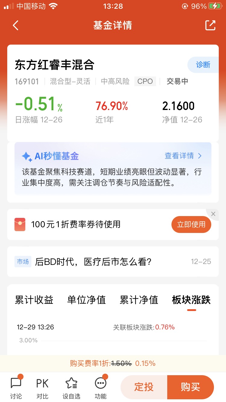东方红睿丰(169101)最大核心优势:精准押注高景气主赛道+硬核经理坚定持仓,牛市涨得极猛,还兼具LOF灵活交易,这是碾压同类的核心! 【最核心王牌】赛道踩得准+拿得住,风口红利吃满 提前重仓AI算力+智能驾驶+高端制造(2026最强主线),不追短期热点,坚定持有龙头,2025年精准吃到算力大涨,近1年涨幅79.5%、今年来83.76%,远超95%同类混合基金; 经理刘辉19年专精科技制造,看透产业趋势后不轻易调仓、逆势加仓,2025年市场震荡中坚决锁仓AI核心股,躲过追涨杀跌的收益损耗,这是普通基金做不到的定力。 【独一档优势】LOF双交易模式,灵活度秒杀纯场外基金 唯一核心:场外定投...