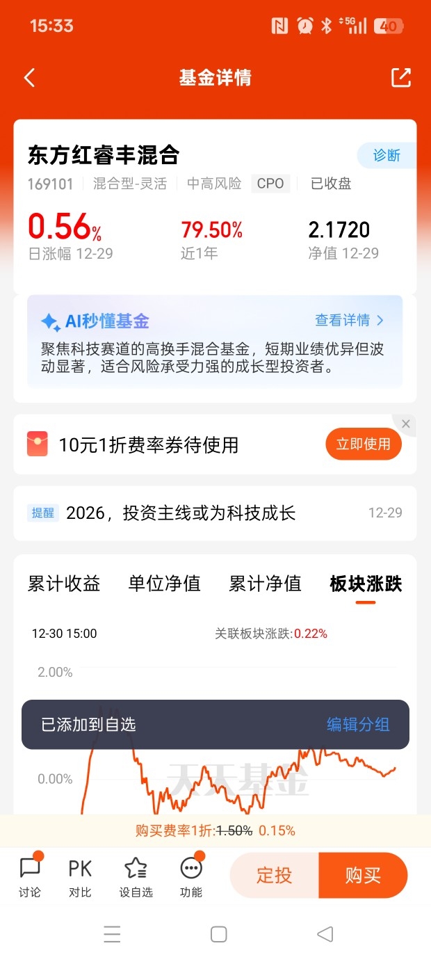 东方红睿丰(169101)对比同类基金,强在这5点(碾压级优势) 【业绩暴击】涨得多、跌得少,收益胜率秒杀95%同类科技/混合基金 短期爆发力拉满:近1年涨79.51%、近6月涨64.17%、今年来涨83.76%,同类排名前3%,远超同类平均(近1年+32%),AI/制造风口吃肉最狠;长期复利封神:成立11年涨332.52%,累计净值3.074,年化收益超12%,同类混合型基金仅5%能达到这个长期收益;抗跌更能涨:2025年市场震荡中,回撤仅12%(同类平均18%),涨时弹性拉满,跌时更抗造,风险收益比同类TOP级。 【赛道精准】重仓2026最强主线,踩风口胜率远高于同类 核心持仓AI算力+...