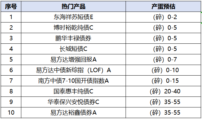 热门产品产蛋预估:(根据16:00行情预测,仅供参考,以实际产蛋为准)