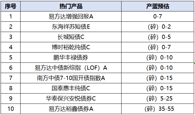 热门产品产蛋预估:(根据16:00行情预测,仅供参考,以实际产蛋为准)