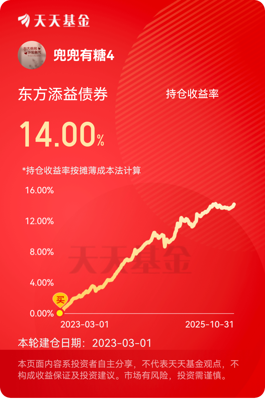 $东方添益债券$ #晒收益# 今天债市整体还算不错,利率虽有调整,但是这个调整幅度特别小,尤其是相比这几天上涨的幅度来说,那简直就是小菜一碟了,而且信用债表现也非常不错!