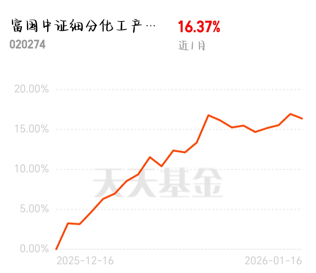 近期新能源车基金回了口血,顺手翻了下组合里的富国中证细分化工产业主题ETF联接C,近1个月涨了16%,近3个月更是涨了22%,领先大多数同类;它跟踪的指数覆盖化学原料、精细化工等细分龙头,受益于行业开工率提升和价差收复失地,富国中证细分化工产业主题ETF联接C适合搭配做周期与结构升级的配置。