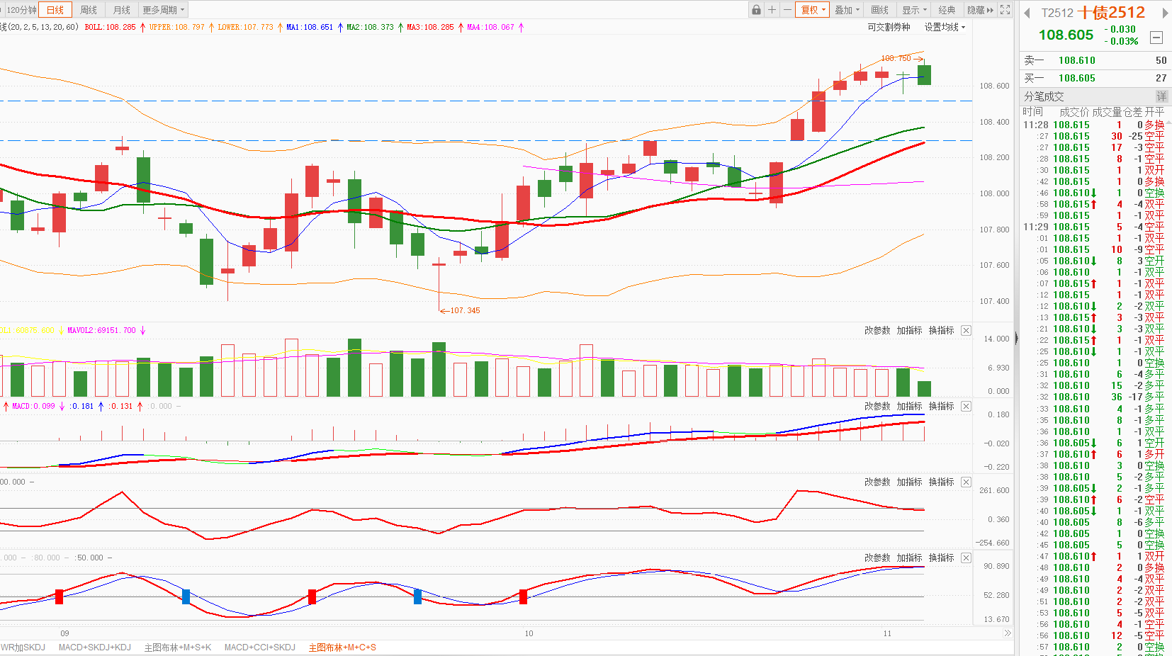 今天10年国债期货高开低走,总体跌0.03%,日K线在5日均线之下。