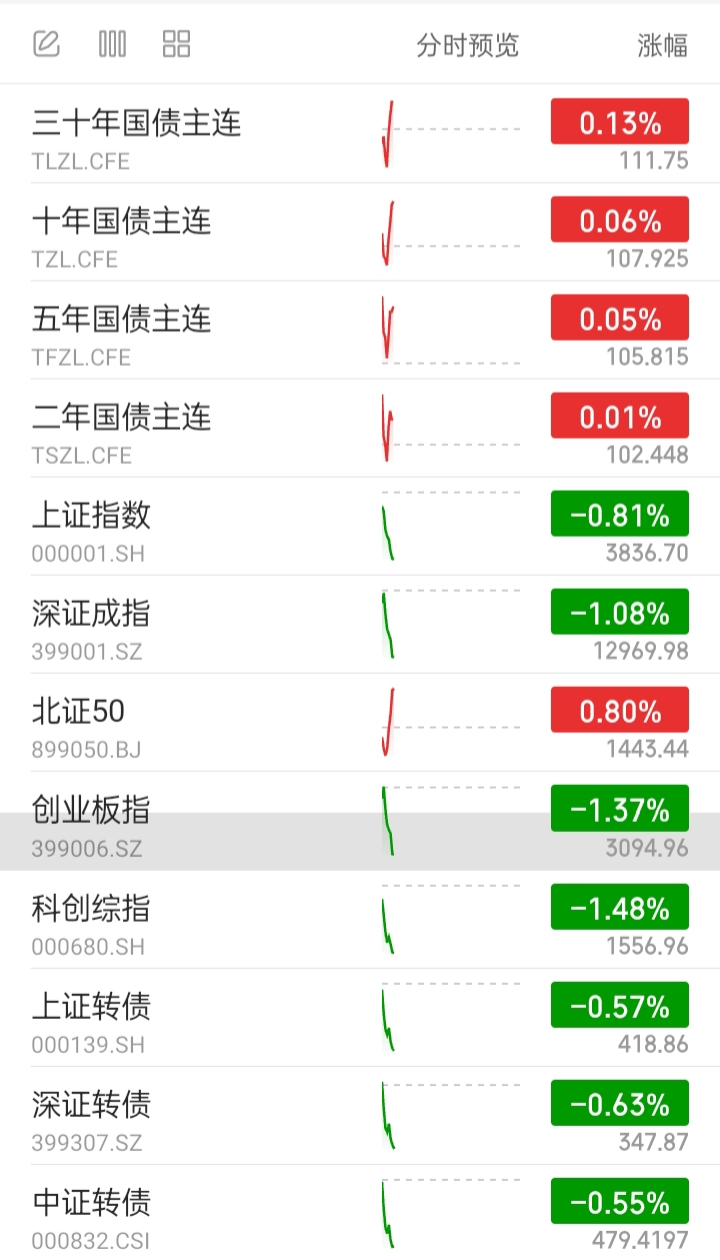 股市主要指数1涨4跌,目前看对债市影响不大。今天偏股混合债基可能碎蛋。