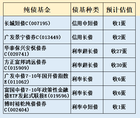 晚上超长端利率债基可能收恐龙蛋。长端利率债基可能收大蛋,中短利率债基可能收中小蛋。