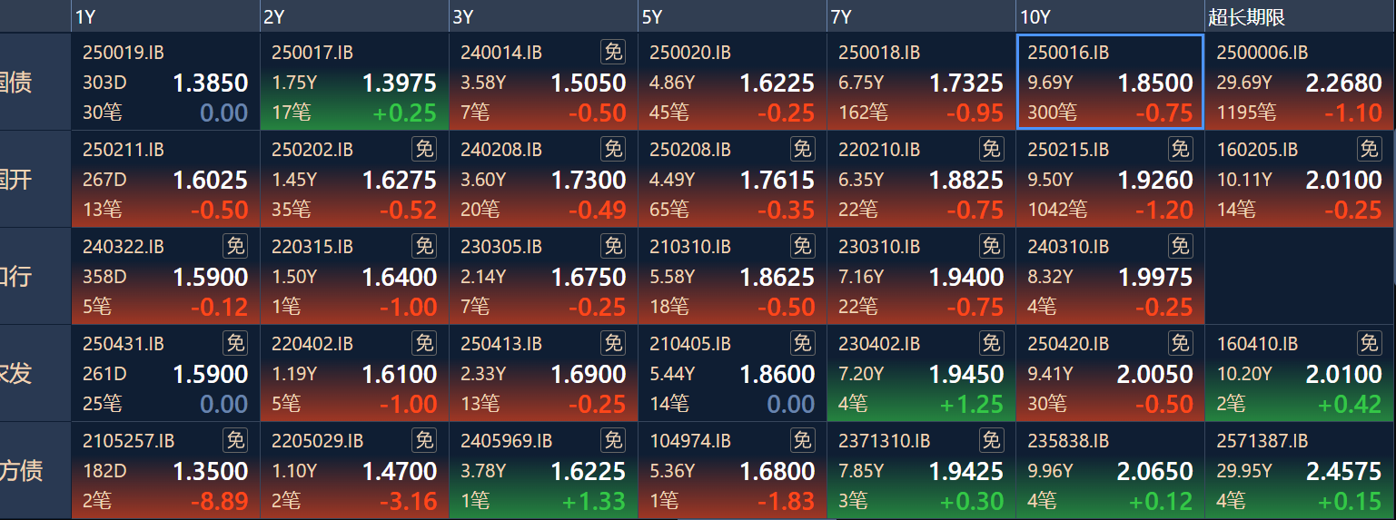 二、十年期国债收益率:1.849 -0.0085%(国债收益率越涨,债市越跌,两者反向关系)