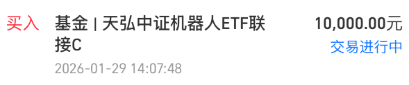 我加仓$天弘中证机器人ETF发起联接C(OTCFUND|014881)$10000元!跟踪的机器人指数本周连续调整,已回踩到20日均线附近,趁这会看跌0.8%左右,我抓紧低吸上车一笔。